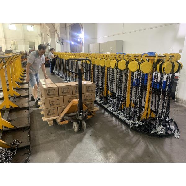 With experiences on producing manual hoists for more than 40 years, we have possessed perfect testing devices and the advanced equipments, including seven computer-controlled lines for high strength chains imported from Germany and Italy, and other automatic and semiautomatic digital controlled machines. Our main items are various models of chain blocks, lever blocks, trolley and high strength chains as well as chain assembly. As one of the biggest professional manufacturers of china blocks in China, our present production for chain blocks has reached 200,000 sets and high strength chains 1,000,000 meters in a year.